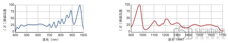 近红外光型(支持900~1700nm)LNSP-300IR165IR98FN2(定制)输出波长和成像波长范围(下图右侧)