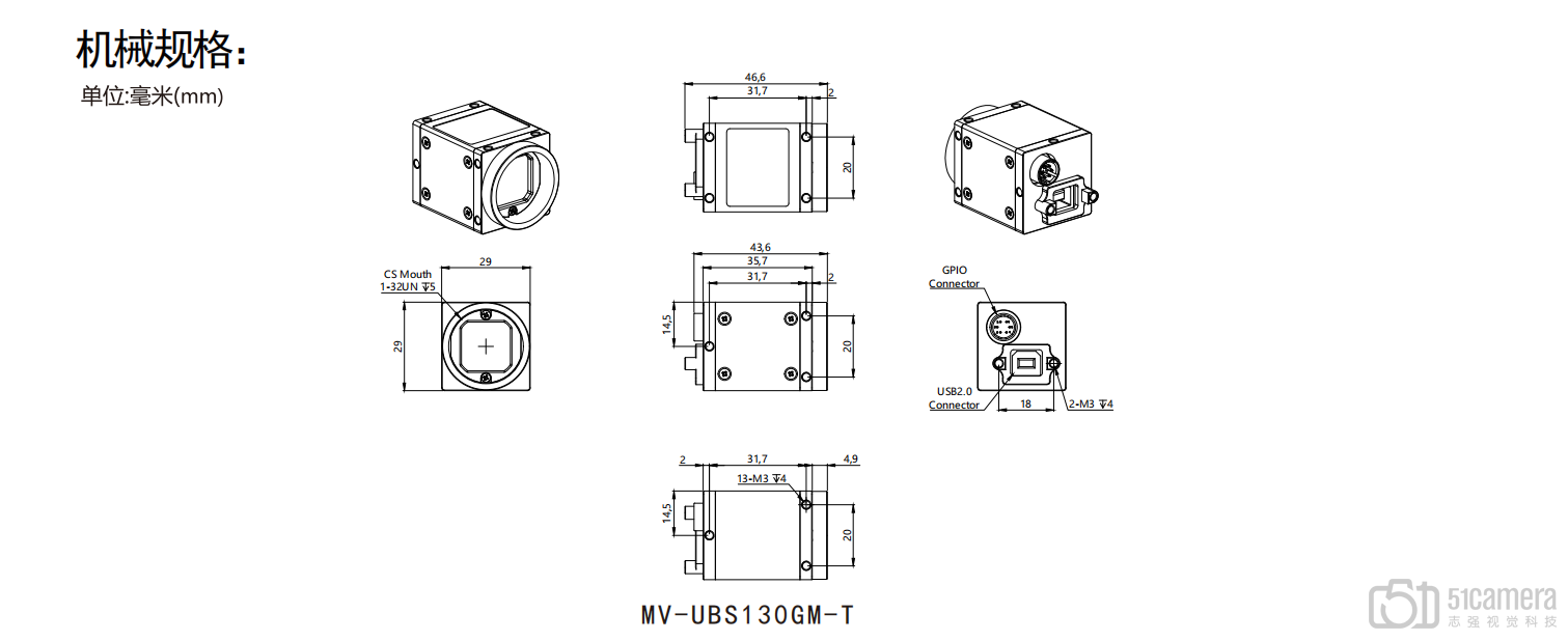 | 外形尺寸 | 29X29X35.7mm (不含镜头底座和后壳接口) |