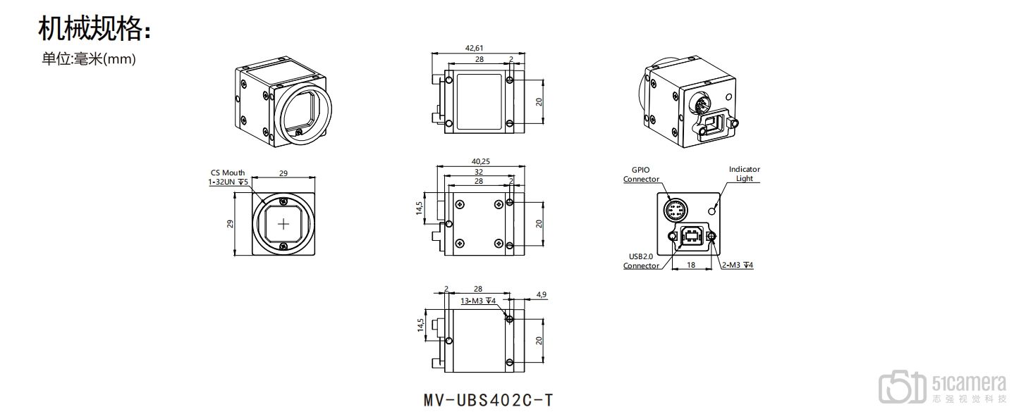 | 外形尺寸 | 29X29X32mm (不含镜头底座和后壳接口) |