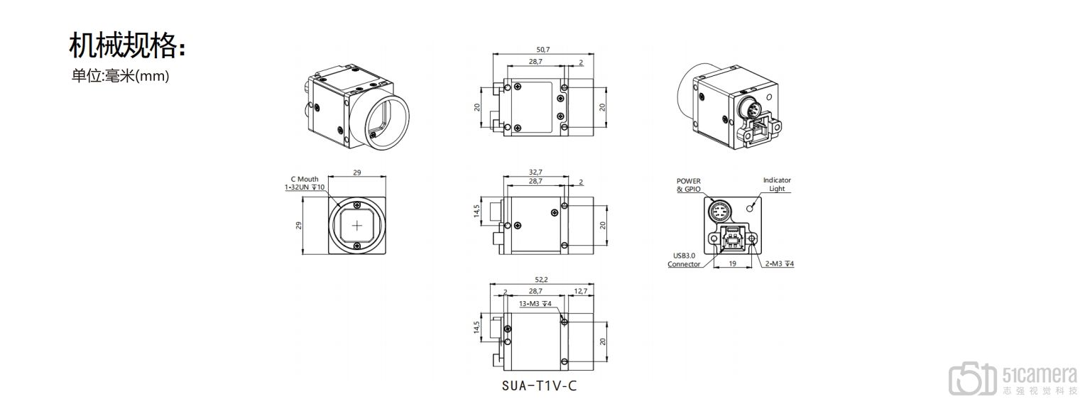 | 外形尺寸 | 29X29X32.7mm (不含镜头底座和后壳接口) |
