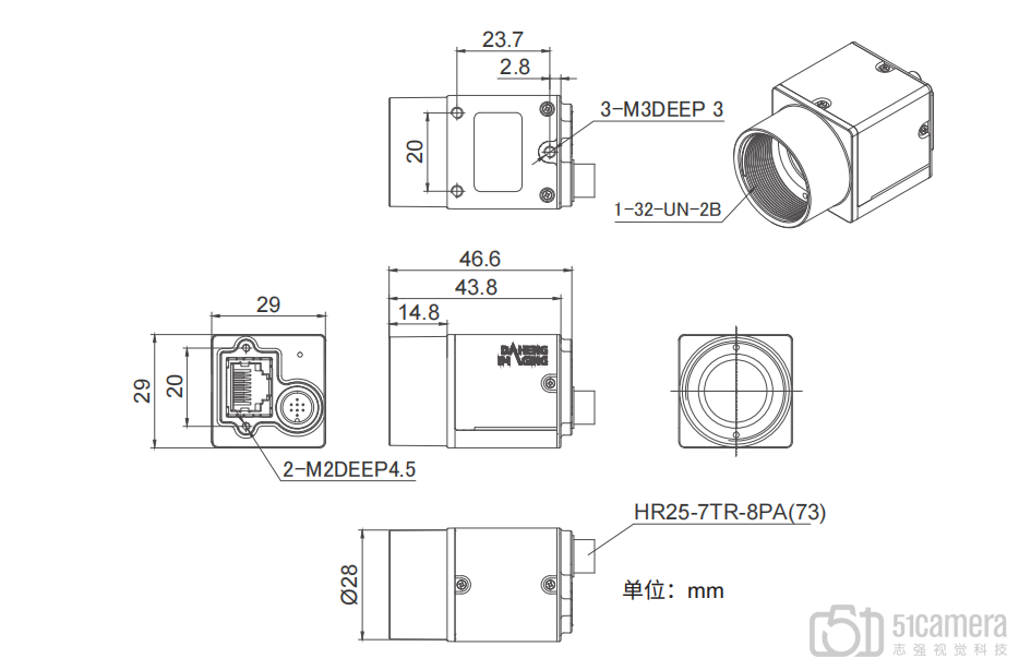 | 外形尺寸 | 29(W) × 29(H) × 29(L) mm(不含镜头接口和连接件) |